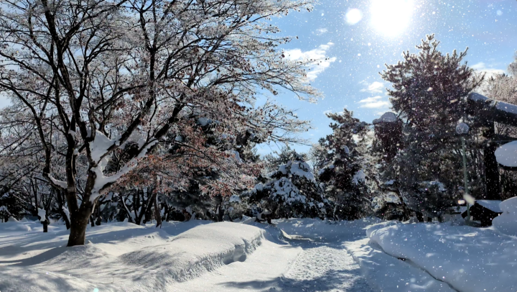 66. ダイヤモンドダストが見られる当別の風景は冬ならでは。氷の粒が光に反射し、独特の景色を作る。寒冷地での自然現象として珍しく、撮影や散策の機会が多い。地域の冬の魅力や季節の変化を感じられる場所で、短い散歩や撮影に最適。